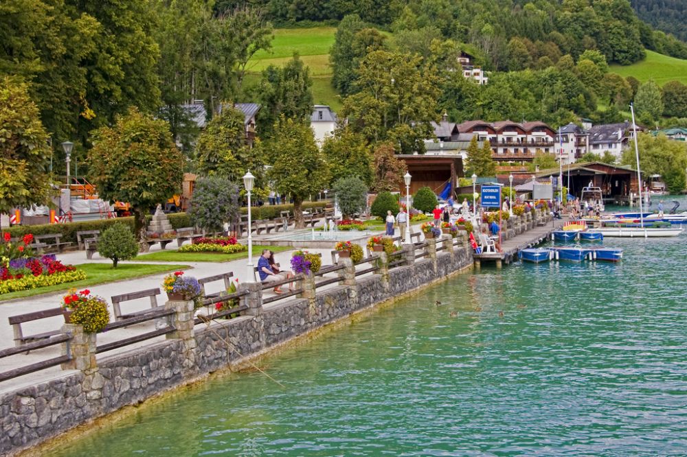 这个小镇游客不少,但也不多,恰到好处装饰着小镇,这个小镇因为一部歌剧《沃尔夫冈湖畔的白马酒店》而驰名遐迩。小镇小巧玲珑,依山傍水,绿树环绕,曾是茜茜公主的避暑之地。整个小镇的房屋色彩纷呈,造型各异,没有一个房屋是完全一样的。房屋被五彩缤纷的花卉和壁饰妆点,整个小镇都是那么地生机盎然。海子说“面对大海,春暖花开。”我说“面对沃尔夫冈小镇,春暖花开。” 如果我们能择一城而终老,沃尔夫冈小镇当仁不让会成为魁首。