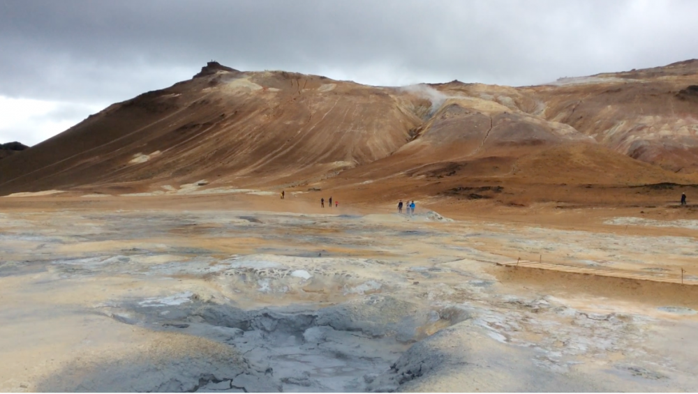 位于火山口旁边的哈维尔(Hverir)温泉,离闻名遐迩的米湖只有不到20分钟的车程。这个温泉虽冠以温泉之名,却不是我们以为的温泉,因为这个温泉“咕嘟”出的是温度极高的石灰泥浆,而且硫磺味道极重,熏得我们头昏目眩。更最致命的是这些泥泉熔岩底部有很多熔岩泥,倘若不小心掉下去,别说人,就是生物也会被烫死,难怪是世界五大夺命温泉之一。