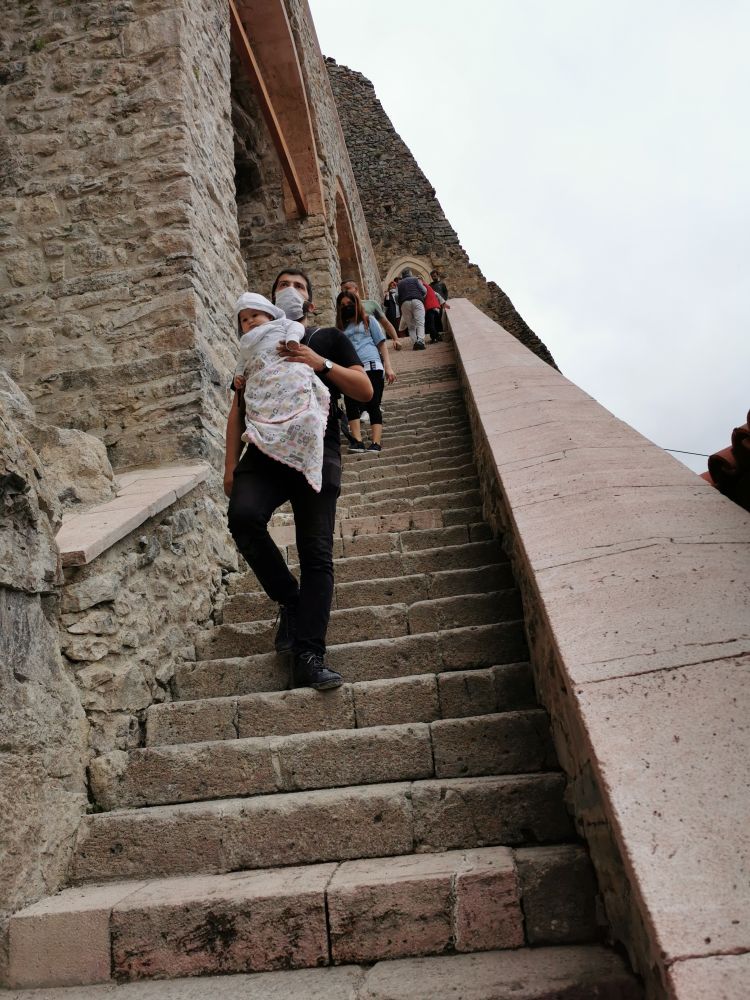 历史不会停滞,罗马共和国也不是终点。随着罗马帝国时代的来临,偏隅最初博斯普鲁斯王国之地的本都王国彻底灰飞烟灭。我在回顾完本都王国的历史后从苏美拉修道院的露台走向栈道,沿途又看见了很多漂亮的宝宝,这些小宝宝跟那些圣经画像中的脸庞很像。走到小巴停靠站,我没有坐车,而是顺坡而下去回味山清水秀的这里曾经经历的沧海桑田。一路上都是水流飞溅,绿意盎然的好风光。如果没有偶尔经过的小巴卷起的灰烟,我的确觉得这里像世外桃源。
