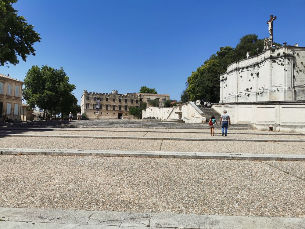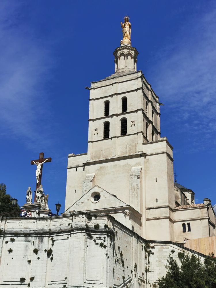 与教皇宫一同关闭的还有其旁的阿维尼翁圣母教堂(Avignon Cathedral)。这座建于12世纪下半叶的教堂比教皇宫的历史还长,教堂顶端的圣母金人雕像跟教皇宫的地位很相配,只是它是19世纪中叶才被放上去的,而那个教皇宫的花园也同样关闭。我就奇了怪了,挺好的一个世界文化遗产,不过年不过节的,为什么都关闭呢?