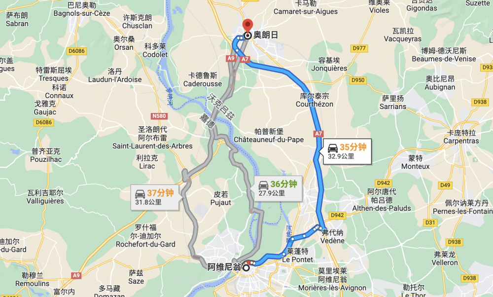 虽然阿维尼翁这个世界文化遗产没有一样建筑能让我看得上眼的,但不管是站在城墙上,还是站在断桥上,罗纳河的湖蓝色河水和一片片绿色的葡萄园都是我永看不厌的风景。相比于让我看不上眼的阿维尼翁,罗纳河谷中,跟阿维尼翁历史一样悠久,也有世界文化遗产的奥朗日(Orange)就更让我看不上眼了,虽然它也有世界文化遗产,而且还是两处。一处是正在整修中,不让进的古罗马剧场,另一处是免费看的凯旋门。这个剧场建于罗马帝国第一任奥古斯都屋大维统治时期,可容纳一万人左右。这样的剧场规模即使允许进入,我也不会去,毕竟古罗马的剧场我看得不是一般的多。