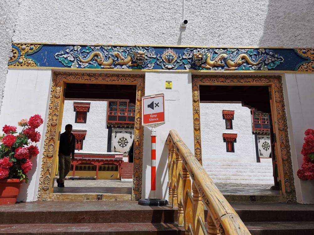今天,这个寺庙是拉达克地区噶举派的主寺,也是佛学院规模最大的寺庙,由那位把拉达克王国推向顶峰的国王僧格南嘉所建。门票100卢比,1美元多一点。噶举藏语中意为“传承”,噶举派建于11世纪。此派别的僧人都穿白衣,故噶举派又称白教。他们对密法的修行都是通过口耳相传的方式,很神秘。虽然相比势力庞大的格鲁派,噶举派只是很小众的一个派别,但嘿密寺却是噶举派中地位极其重要的大寺,下辖跨喜马拉雅地区的200多座噶举派寺庙,同时也是重要的噶举派佛学院,因此地位极高。