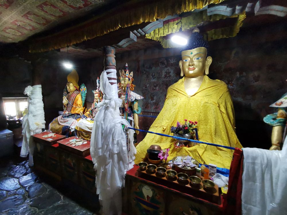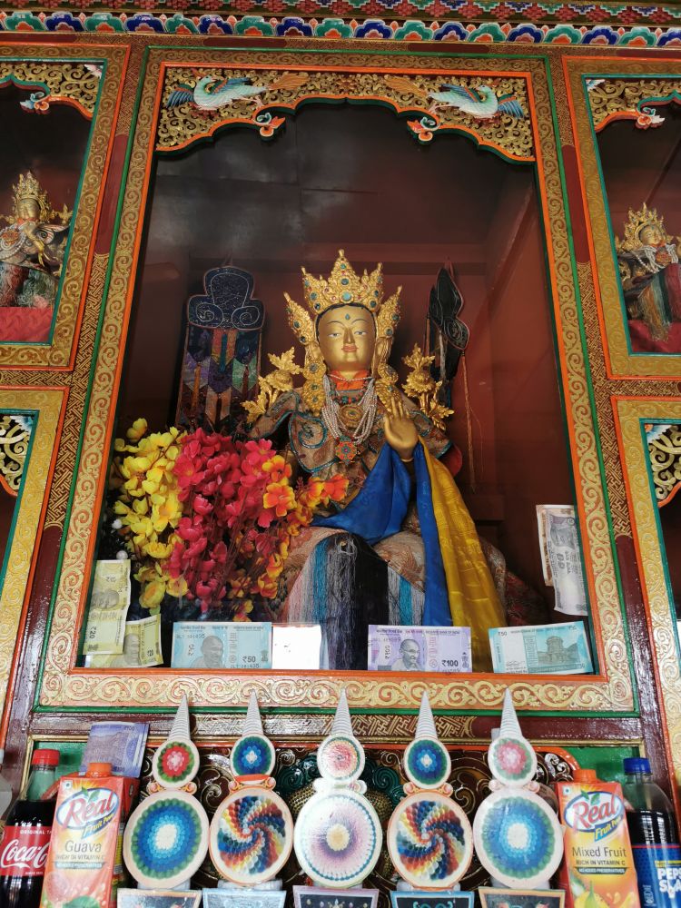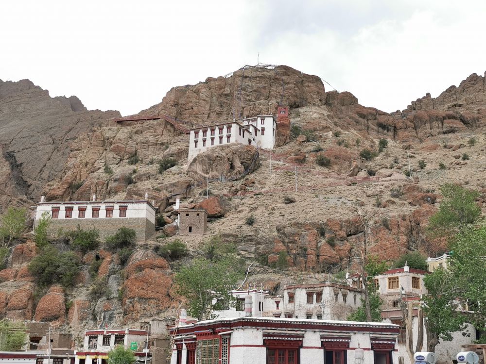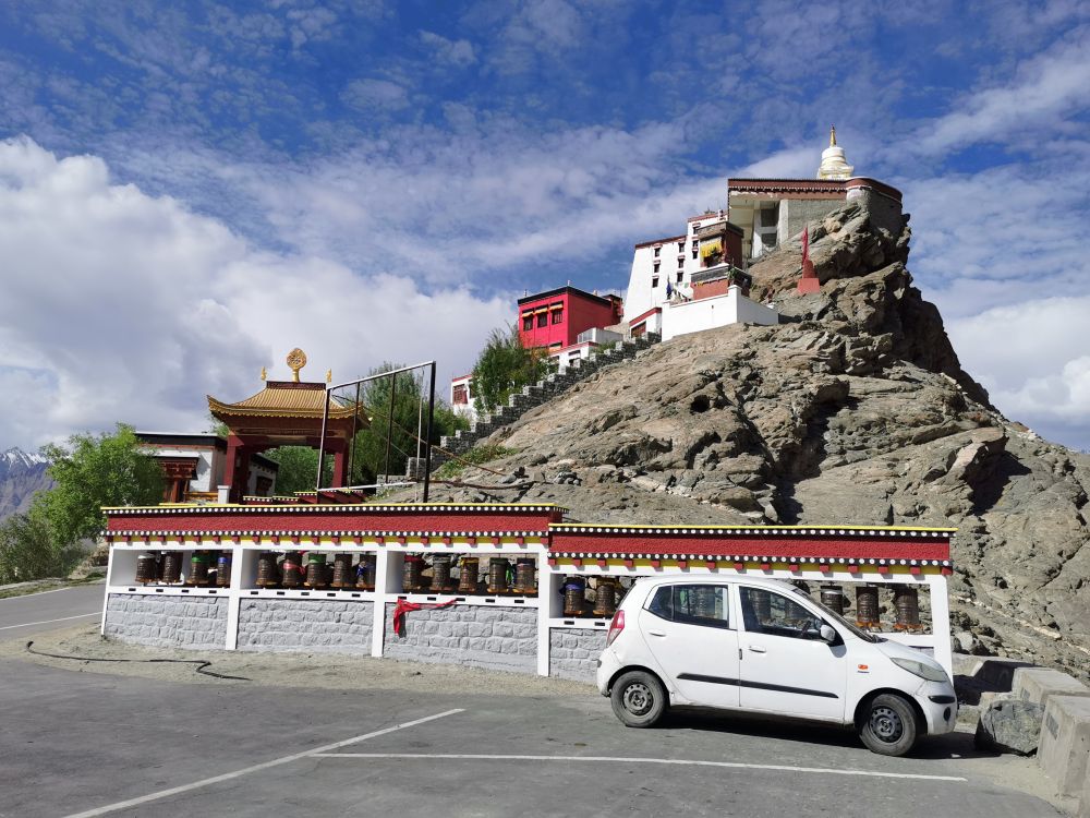 当离列城越来越近的时候,我们又开始与印度河相会。在印度河边,有一个建在海拔3300多米小山上的斯皮图寺(Spituk Monastery)。此寺建于11世纪,最初是藏传佛教的噶举派,15世纪被格鲁派接管。据说,这里有一尊被密宗教派崇拜为宇宙之母的巨大的卡利(Kaali)雕像,但人们只有在寺庙的年度节日期间可以见真容。