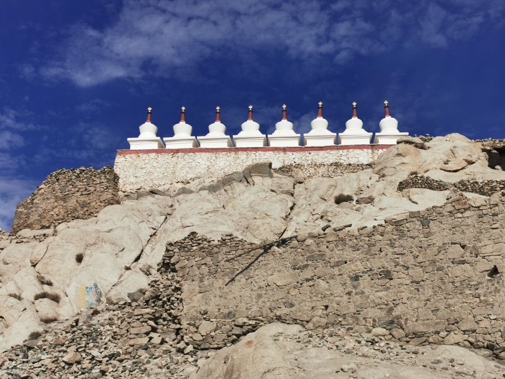 阿里按时来接我,告诉我免费送我去石山上的雪宫(Shey)。这个有着好听名字的雪宫建于17世纪中叶,曾是拉达克王室的夏宫,今天已被废弃。站在雪宫前,眼前是列城绿色的河谷和远处的雪山。每每见到这样的景致,我都会情不自禁地放声歌唱。