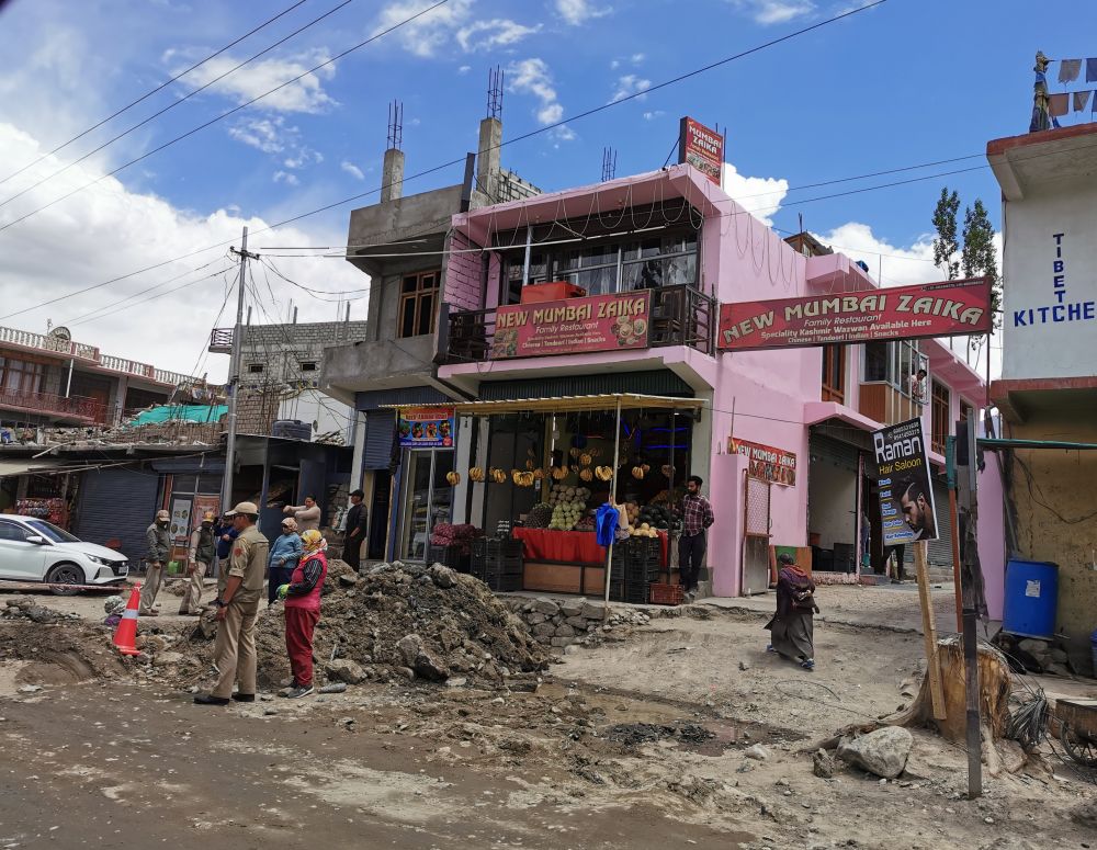 讨厌归讨厌,我们总不能闭门不出,至少得吃饭。酒店帮我们推荐了一家餐厅,我们没想到,这家餐厅所在地居然是干干净净的步行街,这是我在印度看见的最像步行街的地方。我们也不会点菜,只能点羊肉制品,还都挺好吃的,两个人花了800卢比,近10美元。吃完饭在步行街闲逛,我们对列城的印象又好了起来。