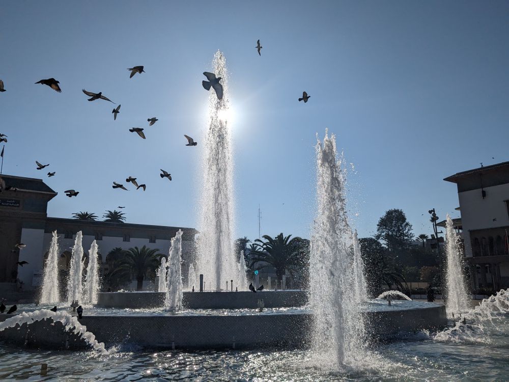 教堂的旁边是一个很漂亮的花园,周边是政府办公区。我们走在幽静、整洁的街道上,觉得摩洛哥就像一个第一世界国家。公园不远处是卡萨布兰卡的另一地标-默罕默德五世广场(Mohammed V Square),这个建于1916年的广场想都不用想,同样是法国人建的。此地是法国殖民这里时的市中心,因而周边建筑具有浓郁的欧式风格,同时融入了伊斯兰特色,这种建筑风格被称为摩尔复兴建筑。广场上此起彼伏的喷泉和展翅翱翔的鸽子让这里和四周生机盎然,我们太喜欢这个广场了。