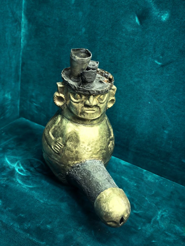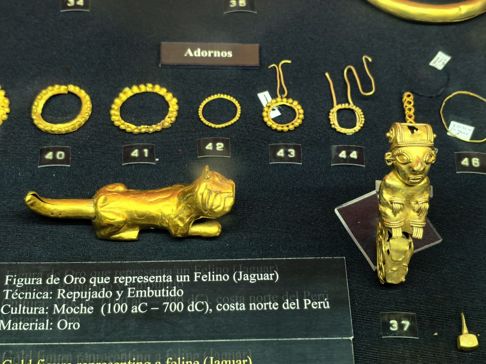 我不知道西琴先生说的对不对,但我知道,没什么神秘值的普克亚纳遗址不是我的关注点,利马的黄金博物馆才是。皮萨罗和随后的西班牙人,曾把印加帝国无数价值连城的黄金器皿溶成了金锭,这个私人拥有的黄金博物馆能收藏多少印加帝国绝美的黄金制品吗?我的好奇心爆棚。博物馆门票40索尔,10美元多,但里面的藏品绝对值得这个票价。如果让去过世界无数国家顶级博物馆的我给这个博物馆来排序的话,那我会说,就黄金制品来论,该博物馆是世界上最顶级的博物馆之一,里面的很多黄金展品,我都是第一次见到。