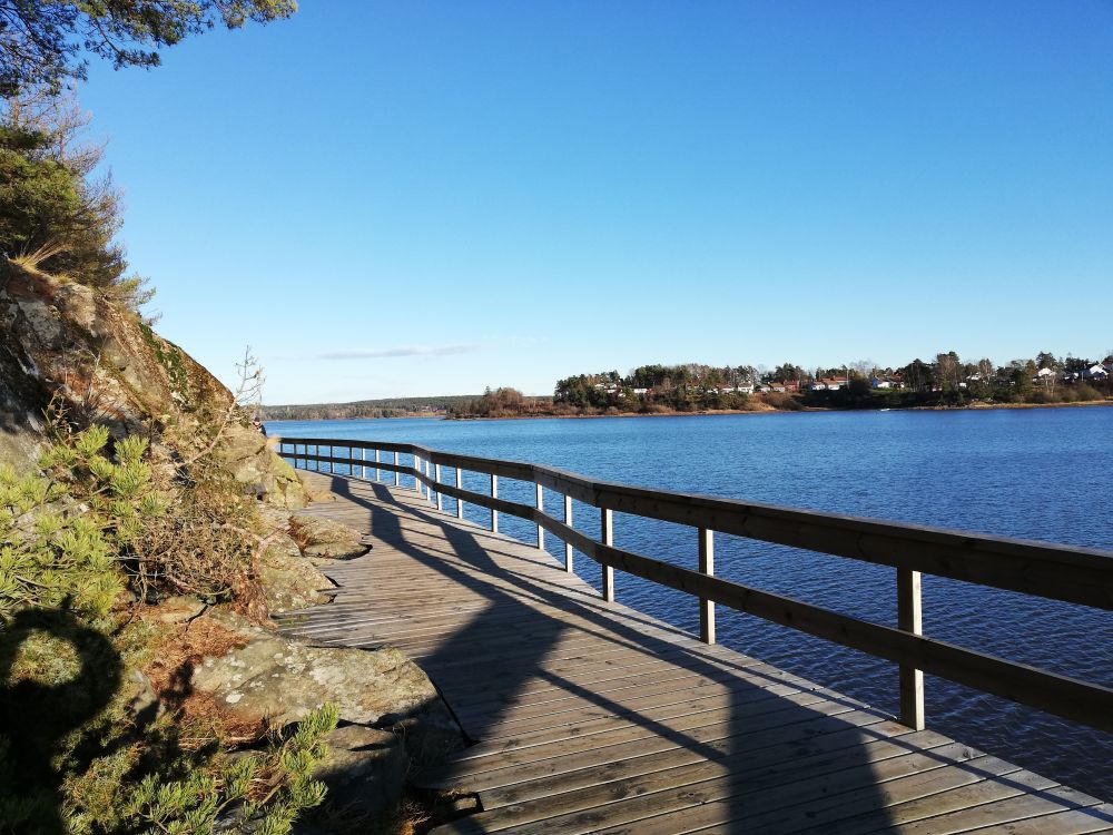 早起咖啡, 餐后办公, 电脑电话,如同校中。午前晴朗, 林中慢跑, 沿水观岸,怡神挥汗。