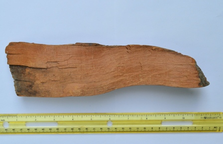标本拿回家后, 我对它做了观察并拍照。解剖镜下的特征显示了它是刺果松无疑。这块木材很小, 长1尺左右,它的两端均是横断面, 清晰地显示着年轮。它的一个侧面几乎正好就是径切面 (Radial section, 是经过树心的纵切面),可用于测定年轮密度。(径切面和横断面的年轮是对应的, 均可用于测定年轮密度。若是不经树心的弦切面 (Tangential section), 则不能用于定年轮密度, 见示意图)。Currey当年用链锯锯了好几截, 它可能是Currey 遗弃的一部分。我拍了几张照片给Steve博士留念。