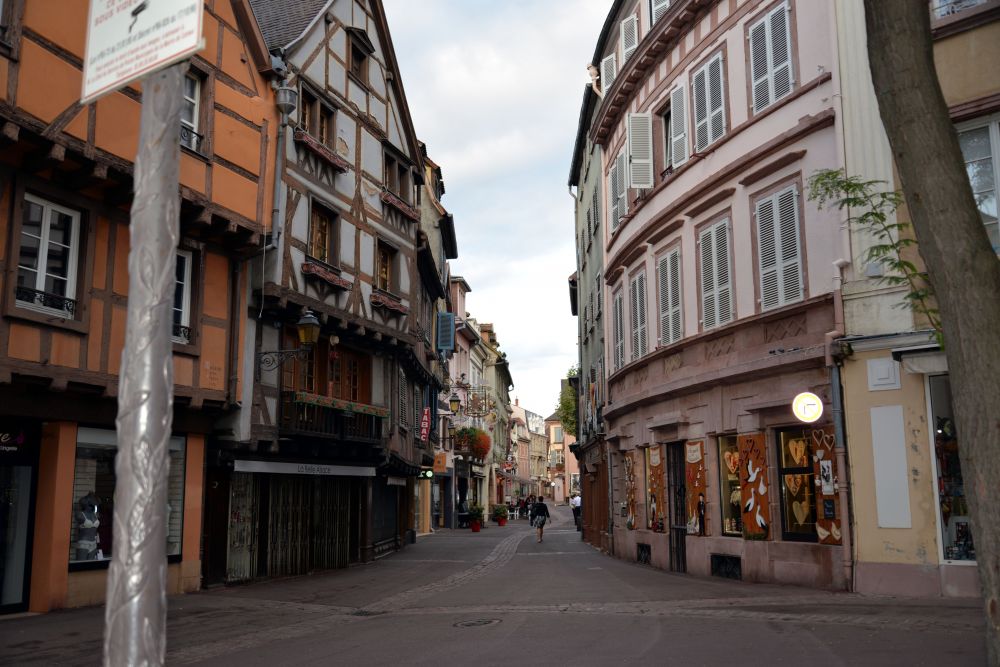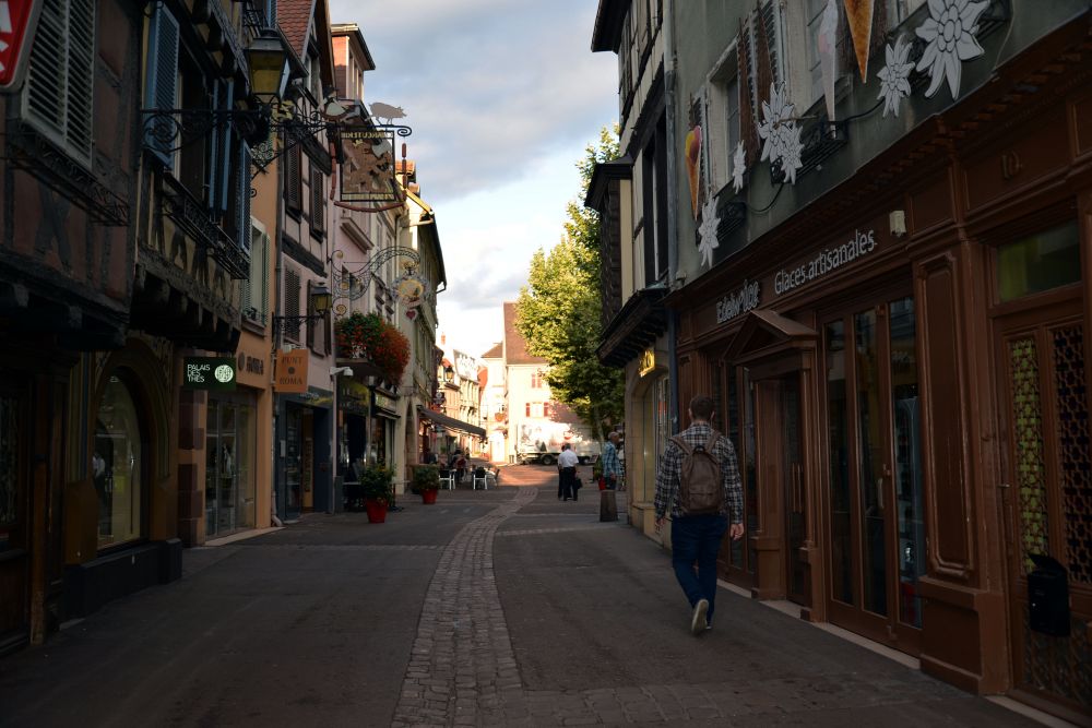 回到这篇博文的主题科尔玛。由于前一晚得到很好的休息,我们一早就起来收拾停当去酒店的餐厅吃早饭。不得不提的是这一路上不管是荷兰,比利时,还是法国,香浓,润滑的cappuccino都从未让我失望过。而我那在美国时常出现的乳糖不耐受症状在欧洲的几个星期也从未打扰过我,不管我一天喝多少杯cappuccino或是牛奶。吃完早饭才过七点,我们就退房向心心念念的浪漫小镇出发了。也就十分钟的路程,我们就到了科尔玛的老城中心。我们把车停在图书馆旁边的停车场后就沿着街道逛起来。