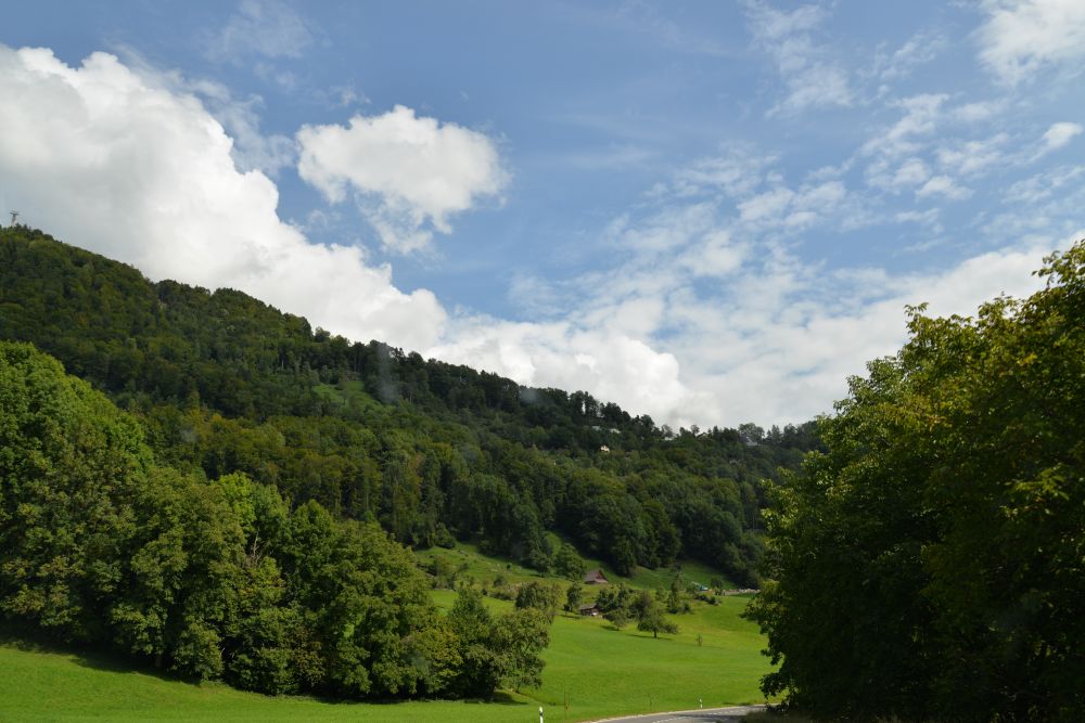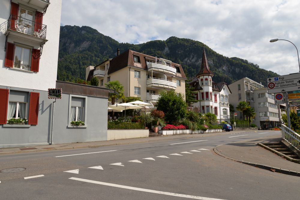 昨天晚上我们商量是坐船游卢塞恩湖还是开车沿着湖自由行。我们选择了自由行。吃完早饭,我们就开车沿着湖向东北方向,也就是瑞吉山的方向开去。一路上开开停停,发现沿湖有很多家庭旅馆,非常漂亮的大大小小的房子。以后再来时可以选一家住,但一定要有独立的卫生间。