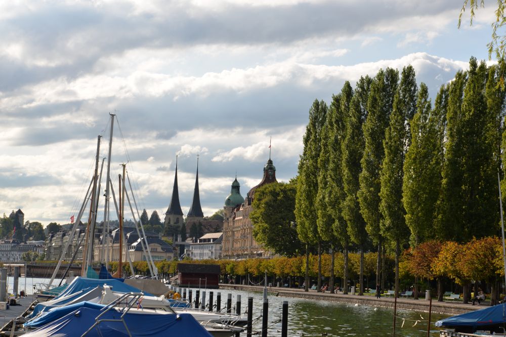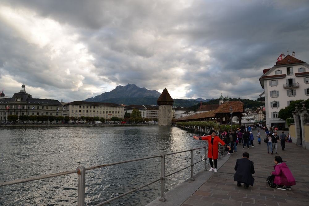 此次欧游我们要从荷兰阿姆斯特丹开到意大利罗马,原则是不开长途,最多不过五小时,在途中选择合适的国家,城市停留。根据我们的路线,本来是准备在瑞士的苏黎世停留一晚。但是看到有网友评论苏黎世商业气氛太浓了,我们就改成了卢塞恩。其实在哪里停留对我们来说都是一种崭新的体验。进入瑞士境内后,高速两旁的风景让我一直惊叹,兴奋不已。我们甚至找了一个路口就下了高速,在附近稍稍的转了转。一路上都在挣扎,一天太短了。到了卢塞恩后,这种想法越来越强烈。我太喜欢瑞士了,当即决定增加一晚。登记入住时就问房东可不可以多住一夜。房东查了查记录,欣然同意我加住一晚。放好行李,稍事整理,我们就出门沿着湖向花桥方向去逛了。虽然天阴着,但并不影响湖光山色的美丽,反而别有一番韵味。