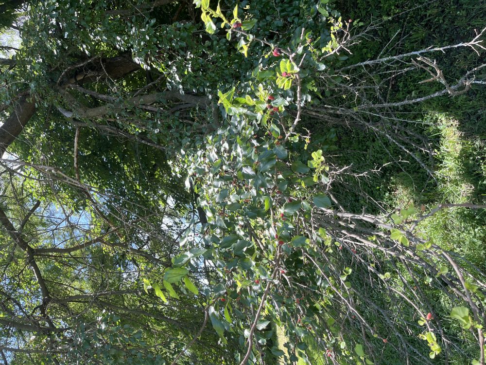春花香草径踏幽,桑葚采梅蘑菇求。一树果实红橙色,