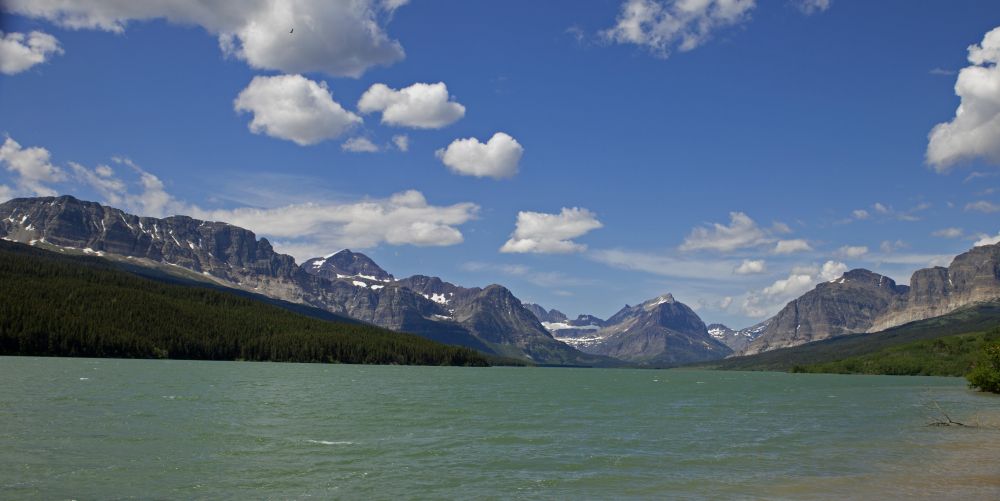这是在Sherburne湖边西望Many Glacier的群峰。