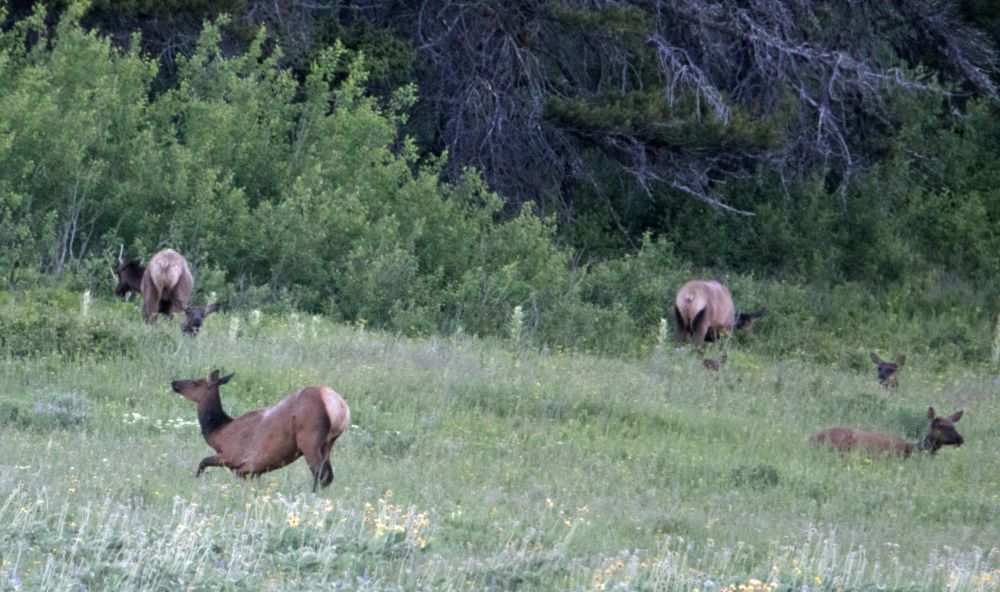 St. Mary湖边,有一大块开阔的草甸,一群????在暮色中享受晚餐。