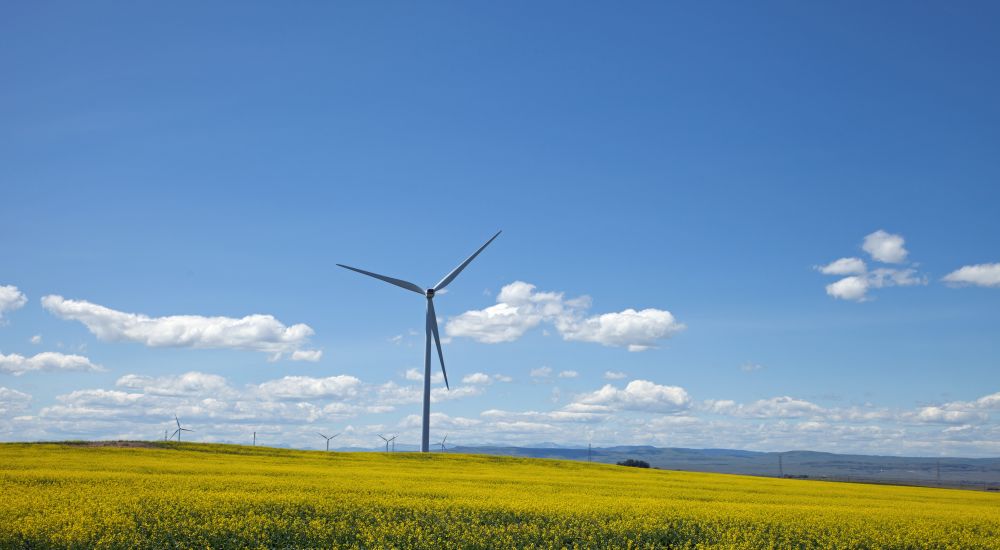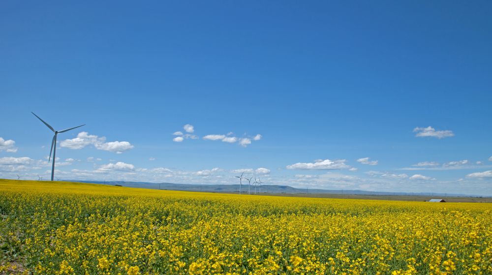 一路上,看到大片大片的油菜花地。配上风力发电的转臂和远处的群峰。完全不是想象中苍凉的大草原的景致。