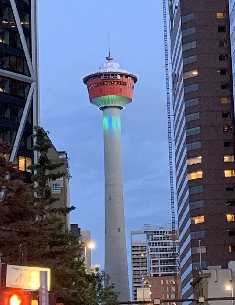 Calgary Tower. 上面有一个旋转餐厅。订了七月七号晚上的座,准备品尝一下著名的Alberta Steak.