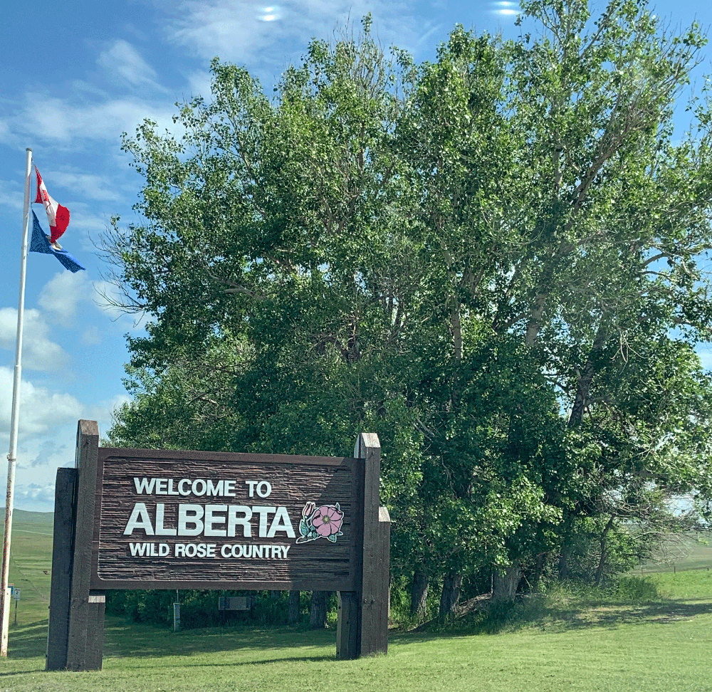 过境以后,道路变为加拿大的AB2. 天高云淡,路边的billboard