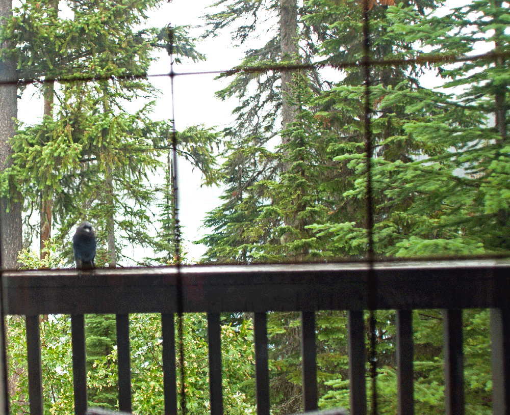 雨中,从木屋的露台上看出去,一片苍茫。碧绿的湖水完全被雨雾掩盖了。