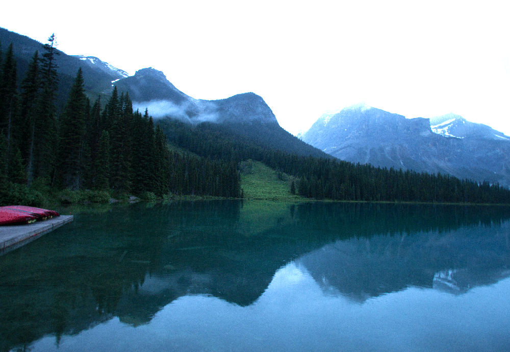 我们顶的Emerald Lake Lodge在Banff的西边,是Yoho National Park的明珠 -- 就在碧绿如翡翠的Emerald lake岸边 。坑爹的是旅馆的停车场在一公里以外,必须坐shuttle往返。小木屋依山而建,背着照相包上坡下坡,累得很。