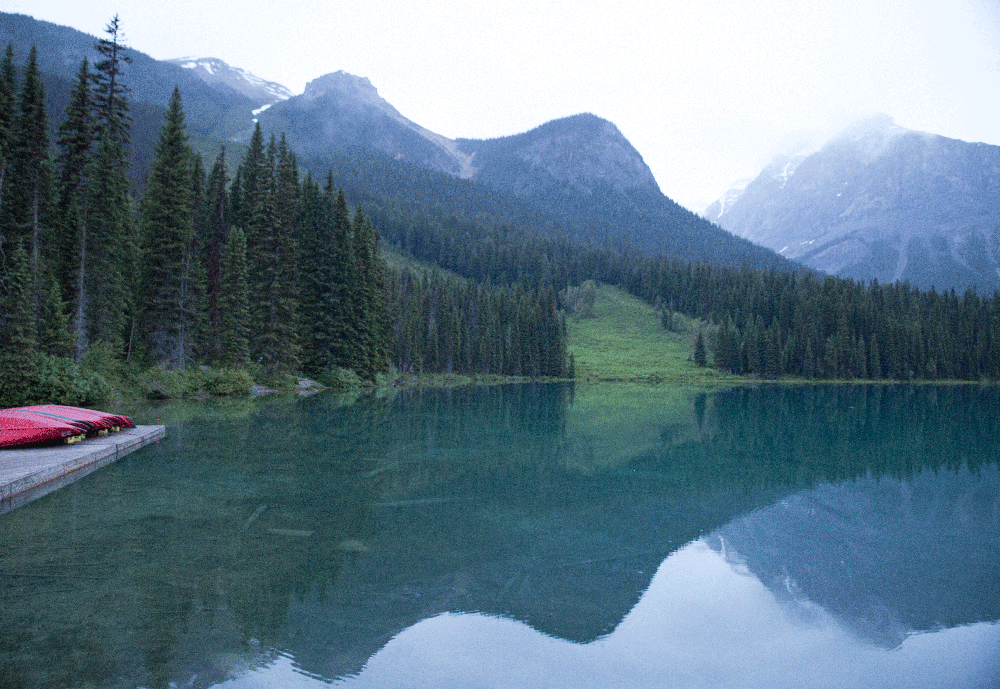 早起,还是云雾缭绕。在静谧中,欣赏小家碧玉的Emerald Lake.