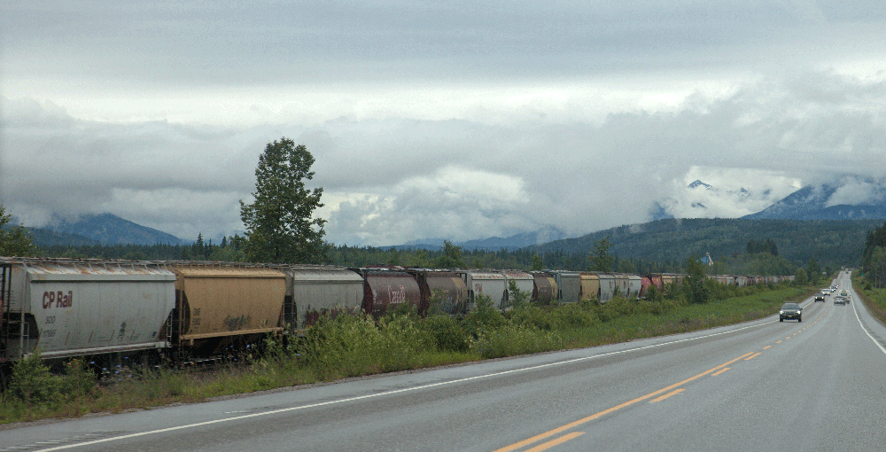 先去Kootenay. TransCanada Highway和铁道并行,不时有长长的运货列车驶过。