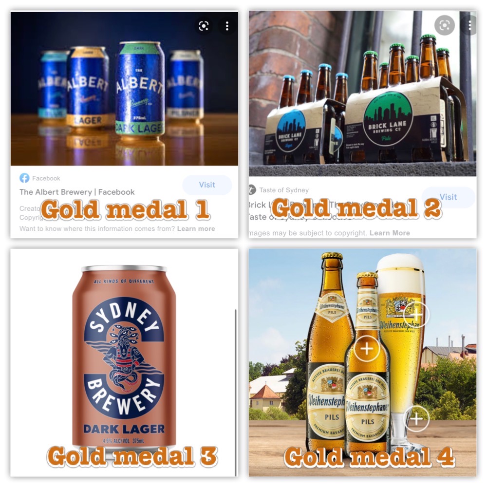 今年澳洲国际金奖(分类Munich Style Helles )拉格啤酒如下(Australian International Beer Awards, 10 - 13 May 2022)[2]