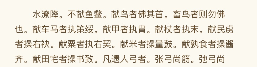 这里的佛,跟拂是一个字。各地给中央政府上贡,献什么不献什么,怎么献,都有明确规定。比如说献鸟,要用手扼住鸟首,为什么?怕鸟啄人啊!但如果是畜养的鸟,因为是驯养好的,就不用扼着鸟首。