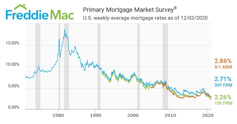 每周四房地美(FredieMac)公布全美一周来房贷的统计平均利率,15年固定、30年固定、和5/1ARM的年利率分别达到2.26%、2.71%、和2.86%,如图一所示。ARM (Adjustable Rate Mortgage)已没有任何优势可言。本世纪初,银行推出ARM,其宗旨是降低购房者最初几年的房贷压力。这款产品每过几年就要 Refinance 一下,否则贷款利率每年上升1%到2%,直到 Cap 加上5% 为止。ARM有点像达摩克利斯之剑,悬在头顶上造成贷款人心理的不安。