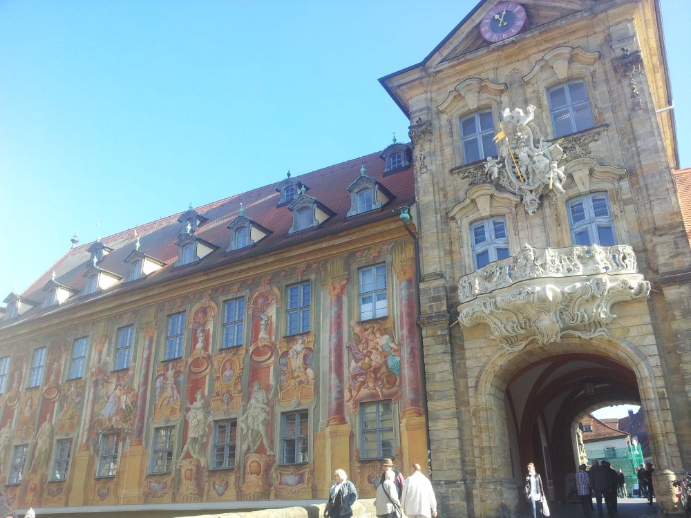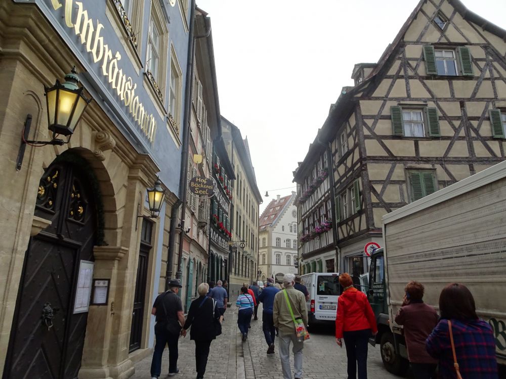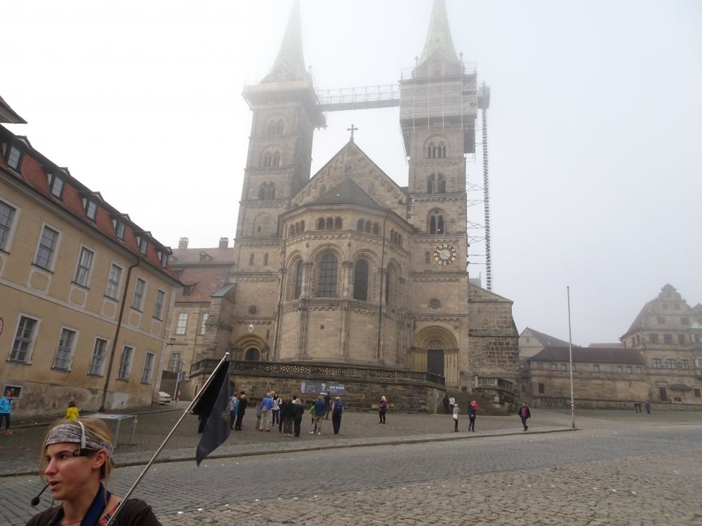 我们进老城一路和上山参观时,山上正是大雾弥漫,没有阳光,光线很暗,不适合拍照片,带4个钟楼的后期罗马式和前期哥特式的班贝格主教座堂?沉在大雾中,等到我们下山后,参观老城时大雾开始散去,但已经到了回船的时间,不能再上山重拍。老城是我见过的最美丽的城市之一。