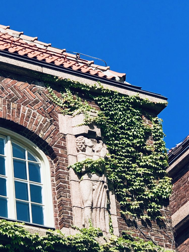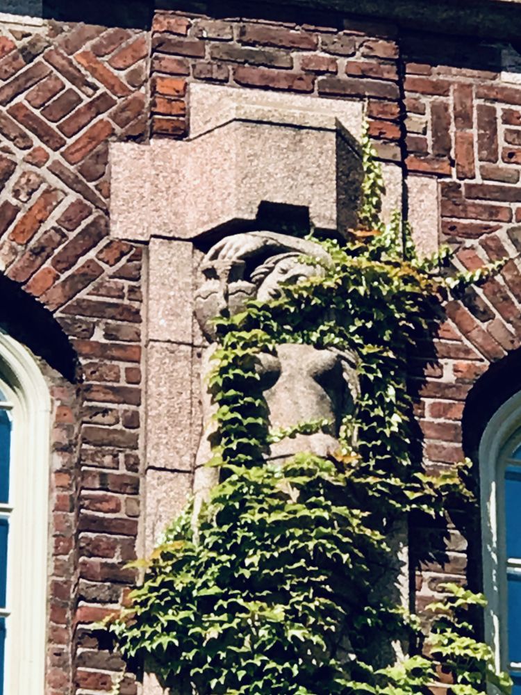 这个今天去的私立医院也是皇家的。所以和皇家工学院是邻居。我就把车子停在这个儿子学习的大学,我以前也工作过的地方。有非常亲切的感觉。所以照了几张照片。欧洲的大学房子上很多都有雕塑。艺术作品都有特点。不过这几个可能有点暴露得太多了。房子是100多年前的,外墙上的叶子包裹着,也相当于给雕塑穿了一点儿衣服,呵呵
