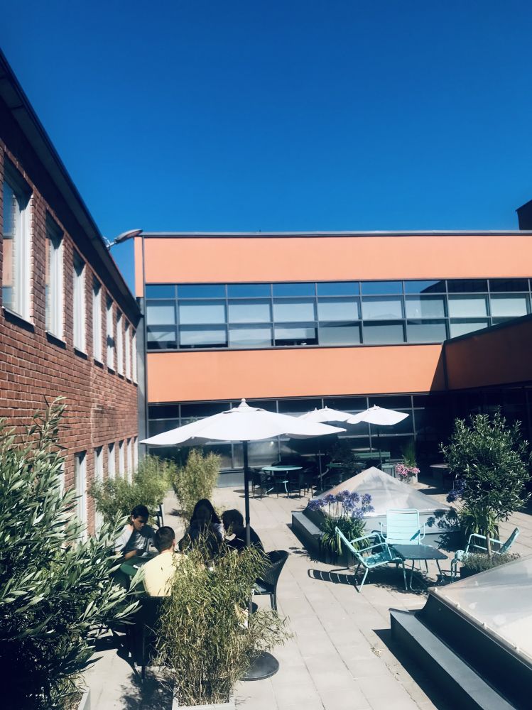 今天走在路上大太阳底下快晒暴了。靠近北极圈的太阳紫外线不要太强哦。也可能是习惯了冷冷的天气冷冷的风,老天爷这样热情一下子,就有点受宠若惊受不了。下午在公司内院小天井里和小朋友一起吃点东西。还是背对着阳光的,也被太阳晒得快中暑了。