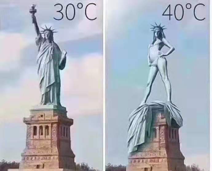 昨天的朋友圈照片里还附了一张远在巴黎的闺蜜的搞笑图片。说法国人民受不了,巴黎热爆了。风趣幽默的法国人让远在纽约的女神(因为是法国人送的礼物)女神穿三点式了。。。