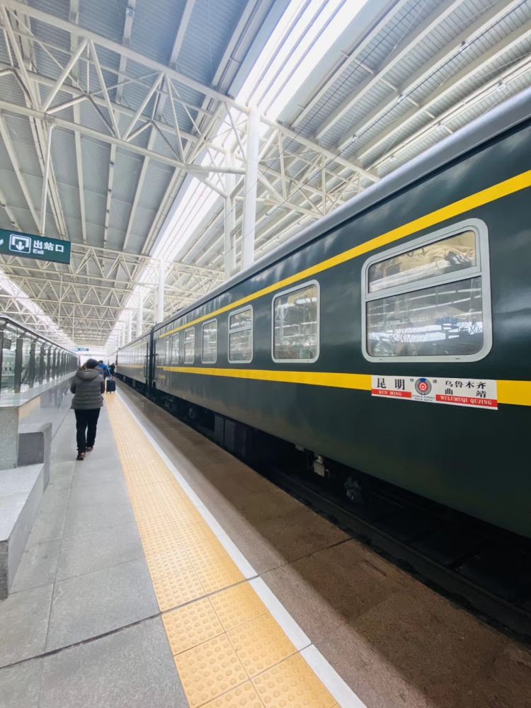 这是从乌鲁木齐到昆明的火车。还是绿皮火车,如果从起点到终点,还是48小时,还是好远的距离。。。