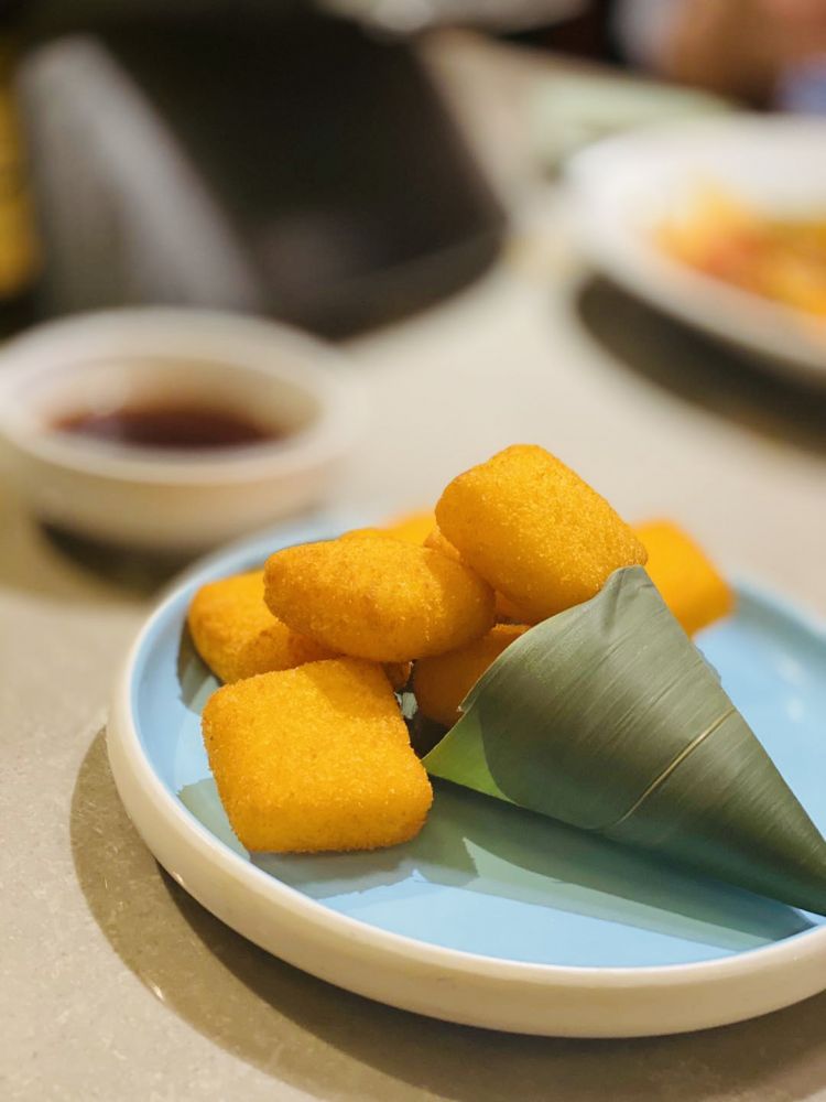 份量太足,两个人尽量吃,吃饱吃撑了也还剩下一大堆。(悄悄说一声,那个油炸糍粑沾红糖熬成的甜浆,那是我的最爱。饭后甜点巴适得很)