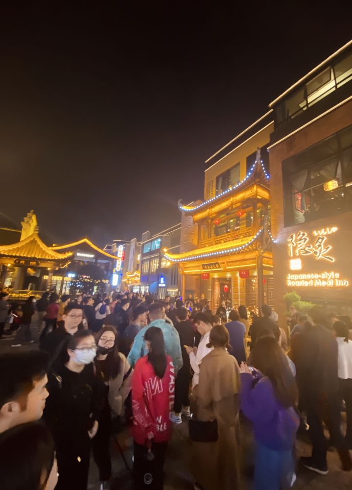 今天是周末又是月圆之夜,熙熙攘攘的人群,老老少少挤来挤去,歌声笑声吆喝声不绝于耳,近乎没有人带口罩。我们的口罩也在包包里。感觉不到疫情。国内现在的确是最安全之地。