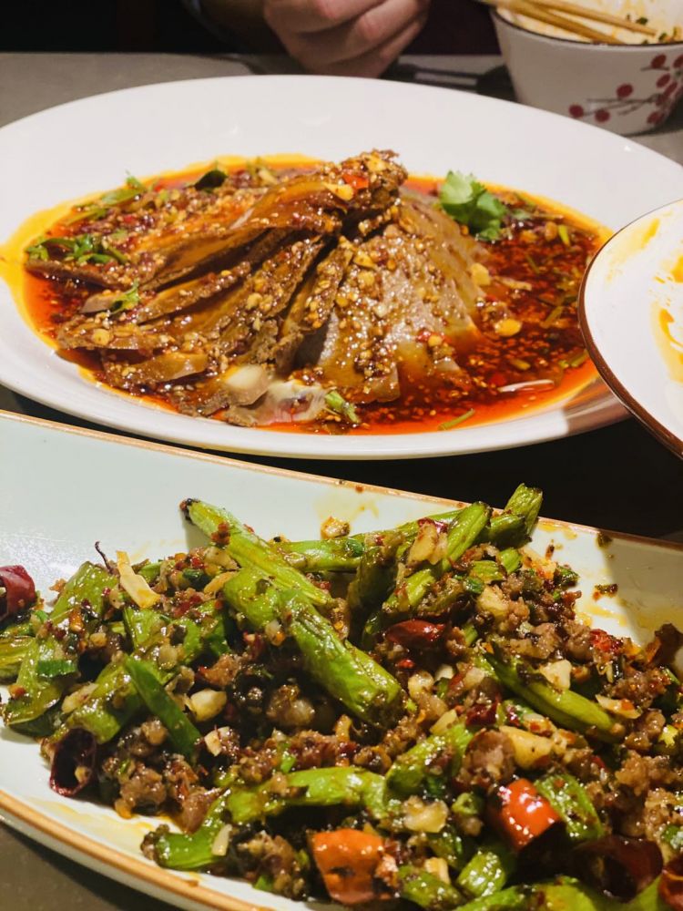 想吃川菜,于是去了人气满满的《巴蜀人家》,一楼都没有座位了,漂亮妹妹叫我们上楼,上去和服务员用不地道的四川话聊天,她觉得贵州来的我也是家乡人,很亲切的指点我扫码点餐,点特色菜。于是用193元点了5个菜。蕨根粉,夫妻肺片,干煸四季豆,好大一盘重庆烤鱼,红糖油炸糍粑。份量十足,可惜就是辣味不够。川菜在合肥也已经入乡随俗,虽然还是红通通的辣椒的样子,吃到嘴巴里,辣得不过瘾[呲牙]下一回去吃一定要特别强调,朝天椒一定要放足份量,要有辣得火烧火燎的感觉才过得了瘾。。。