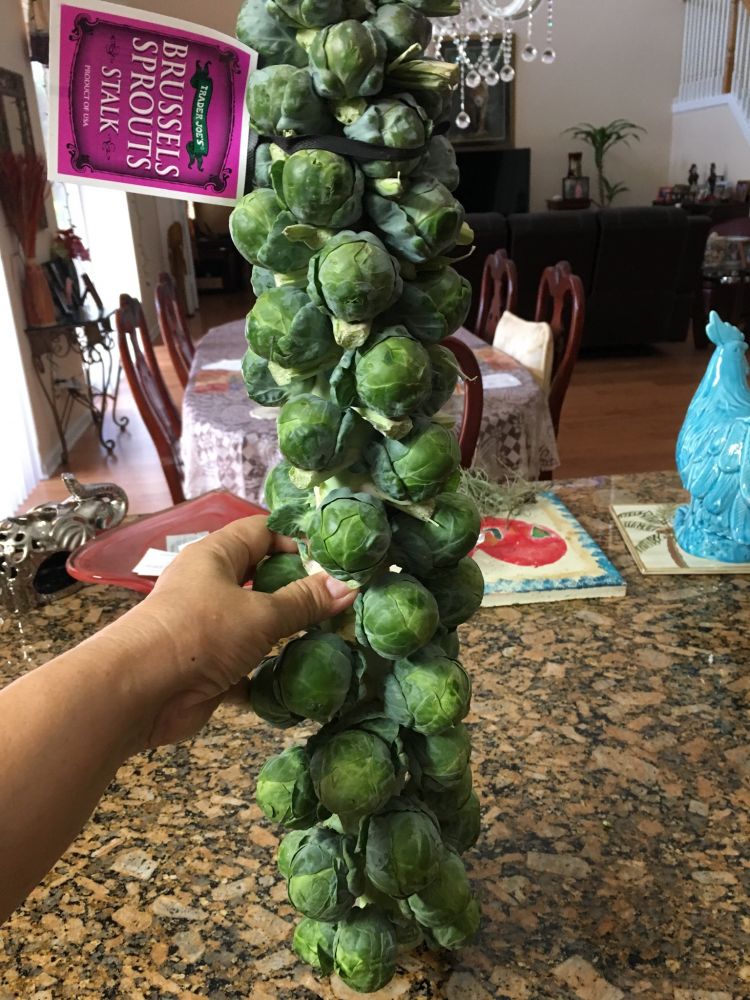 去年在Trader Joe 第一次见到这样的Brussels Sprouts, 才知它是这么长的。因平时在店里看到的多是这样。