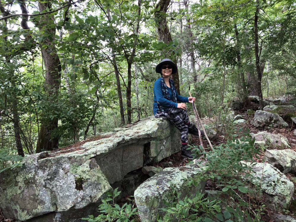 景区内树林原始,树种多样,徒步小道繁多。照以往经验,我们首先选择了一条只约1 公里的俯瞰overlook 小道。未想到那短短小道却给了我们一个下马威。首先,上山路的陡峭和险危至今还让我脚胆颤,根本不敢朝下看,一手扶棍仗,一手抓住边上的树枝,更不敢照相了。其次,小道实际距离似乎比指南上的长多了。对于我们在平地住长久了的人,以后还真不能相信公园的指南了。另外,首次徒步又给我们了一个下马威:山路陡险,挑战体力。