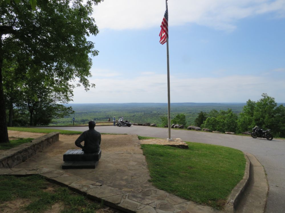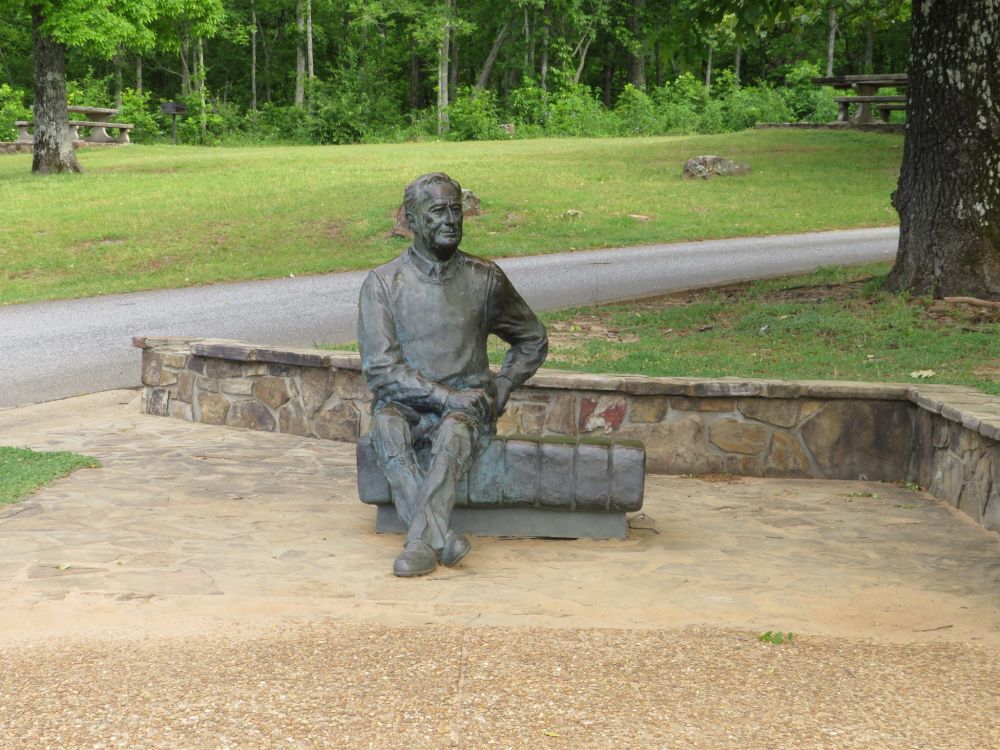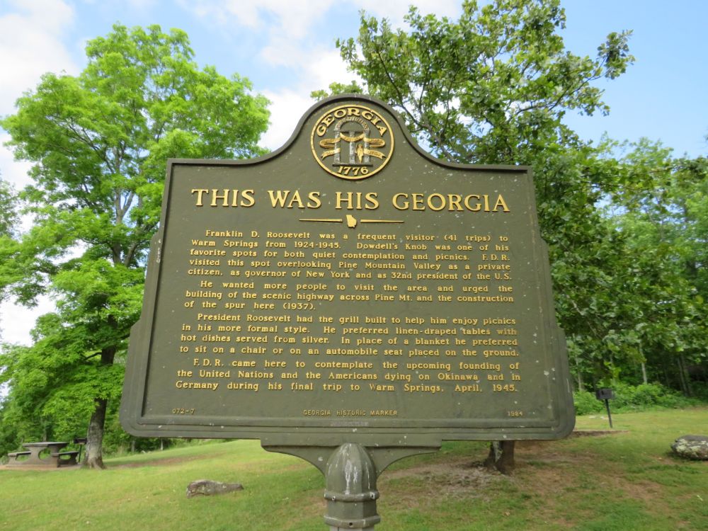 FDR每到暖温泉小城水疗,总要开车上附近的Pine Mountain 松山游览。从他给母亲的信中可知松山给他带来的轻松愉悦。松山虽称为山,实际上只是一条从西南到东北向长仅约32公里的山丘,平均海拔只有400米左右。在平均海拔约50米的乔治亚州中部与南部,这也足以称山了。Dowdell’s Knob 是松山的最高山峰,海拔425米,现为F. D. Roosevelt State Park 的一部分。站在那山峰俯视,远望,视野开阔,一望无边,心情舒畅。