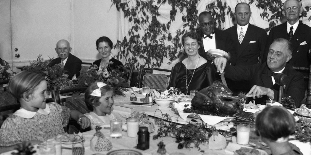 FDR 亲自参加了庆祝仪式,并在dining 首次举行了他多年举行的传统感恩节聚会。