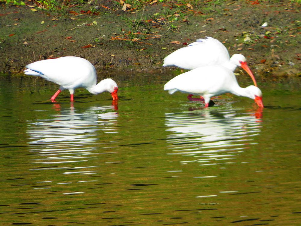 American white ibis 美洲白鹮羽毛雪白,长长的嘴似弯弓。它们在塘边水里走来走去,关注的是水里的小虫小鱼。