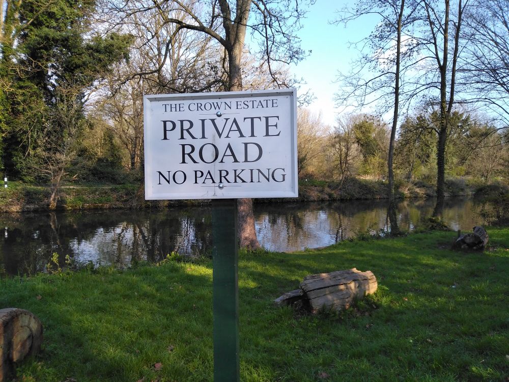幽静的小河边,竖着告示牌“皇家领地,禁止泊车。”