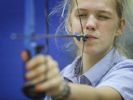 "她不像其他孩子那样用背部肌肉的力量去拉弦," 大卫说。"她用上下颚。不论是瞄准的目标,还是站的姿态,她都和人家不一样,可是她不想让人家待她不一样,她希望被同等对待。她拿定主意夺冠取胜,她练得非常投入。"