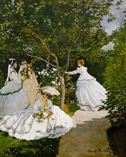 1867 年,艺术沙龙拒绝了四个女人在花园里的作品。评委们认为,照射在女人裙子和雨伞上的太阳光看上去很奇怪,还有树的阴影也很古怪。