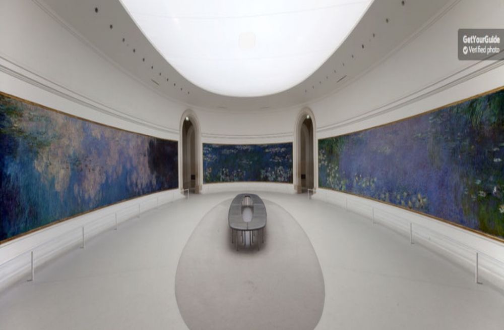 1918年,第一次世界大战结束了。当时的法国总统乔治•克列孟梭是莫内的朋友,这一年他来到了莫内的家里。他请求莫内把睡莲壁画赠送给法国。莫内同意捐出12幅作品,但有一个条件:这些画必须是挂在一个圆形的大厅里,这样当观众站在大厅当中欣赏画的时候,他们会有一种漫步在睡莲池塘边上,被睡莲包围的感觉。