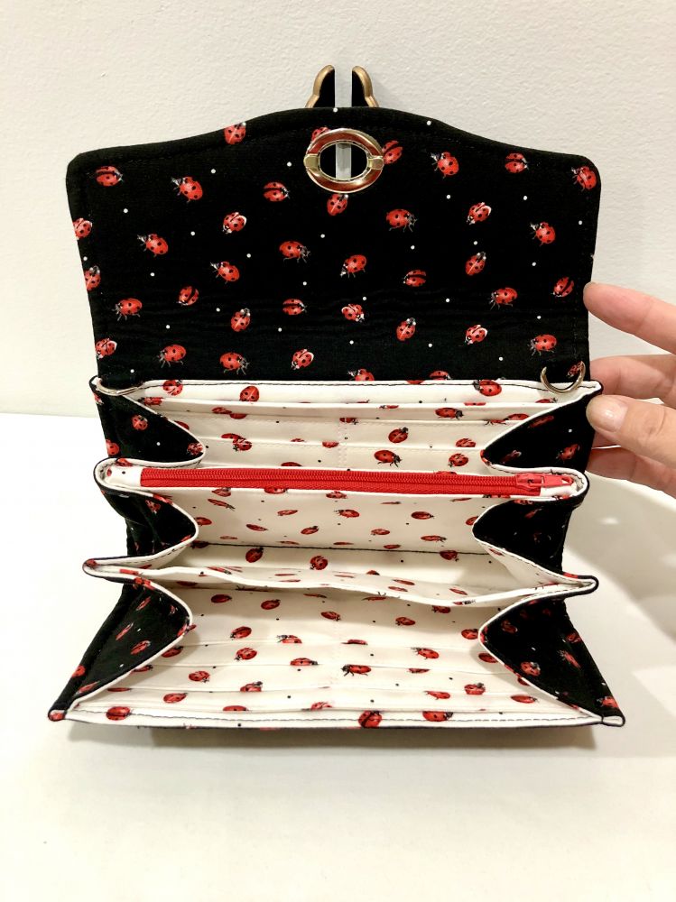 我这款缝制的钱包看起来制做像是有一定的难度. 但很漂亮。 它内有五个夹层. 12 个放各类的卡袋以及 1-2个带拉链的小袋。非常的实用。也有足够的空间放手机。最好的就是你可选自己喜欢的颜色和布料来做。在这里向大家秀一下我的 wallet collection .