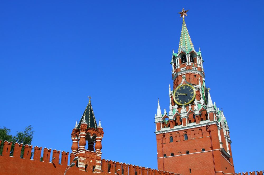 9. 克里姆林宫周围红墙呈四边形布局,东二边靠红场,西边靠亚历山大花园及无名烈士墓,南边临莫斯科河。共有5座门楼及15座塔楼,面对东侧红场有3座门楼。这是最壮观的救世主塔门楼,该门楼始建于1491年,由于门楼前后镶嵌着救世主的圣像,在沙皇时代,进入塔门时必须脱帽行礼划十字。当年拿破仑远征俄罗斯时便是从此门进入克宫的。5座塔楼顶的红五星是1935年安上去的,以取代旧时象征沙俄的双头鹰。为了庆祝“十月革命”胜利二十周年,1937年红星换成了更昂贵的红宝石玻璃,红星更可以旋转360度。里面安装了灯泡,夜间发光。在二战期间,红星中的灯火一度关闭,同时克宫也做了不同程度的伪装以防德军空袭。Spasskaya Tower
