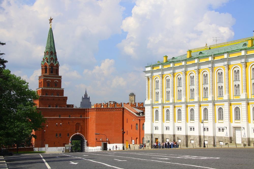34. 这是伊凡广场的另一边,靠救世主塔楼的这幢黄色外墙建筑苏联时期是最高苏维埃主席团所在地。苏联解体后至2015年,这是曾是俄罗斯总统的办公楼。