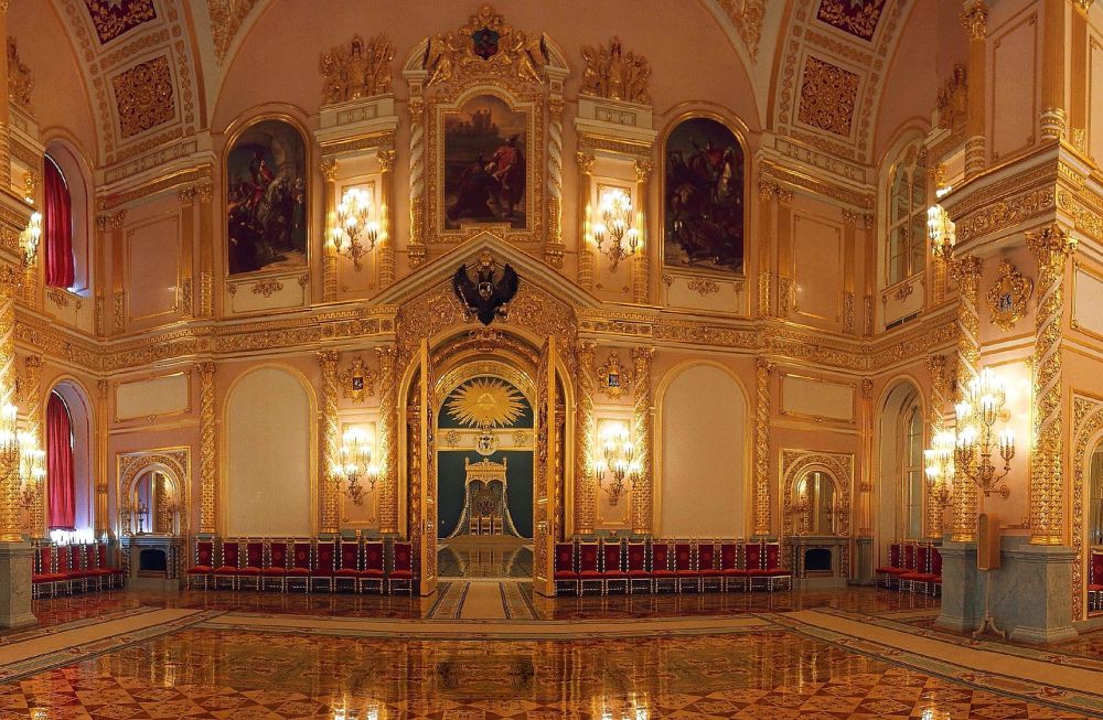 36. 始建于1837年的大克里姆林宫曾作为沙皇在莫斯科的住所而建,历时十二年完工。大克里姆林宫的外墙装饰呈现的是中世纪的俄罗斯风格与拜占庭风格的结合,绿色的圆顶则具有蒙古帝国的草原风情。大克里姆林宫由三个部分及内庭院组成,即中央宫、多梭宫和特雷姆宫。特雷姆宫在庭院最深处,现为总统正式居所。中央宫从苏联时期开始以来,便成为苏联/俄罗斯的举办重要的国事、外事的场所。外观三层的中央宫内部只有两层,因此大厅内部尽显高阔气派。内部辉煌无比的大厅有圣安德鲁厅、圣弗拉基米尔厅、圣乔治厅和圣亚历山大厅四座大厅,外加沙皇的金厅。网摘几张大厅内部的照片供大家感受一下,也许有助于理解普京为什么变着法子执着地坚持要“为人民服务”的缘由!